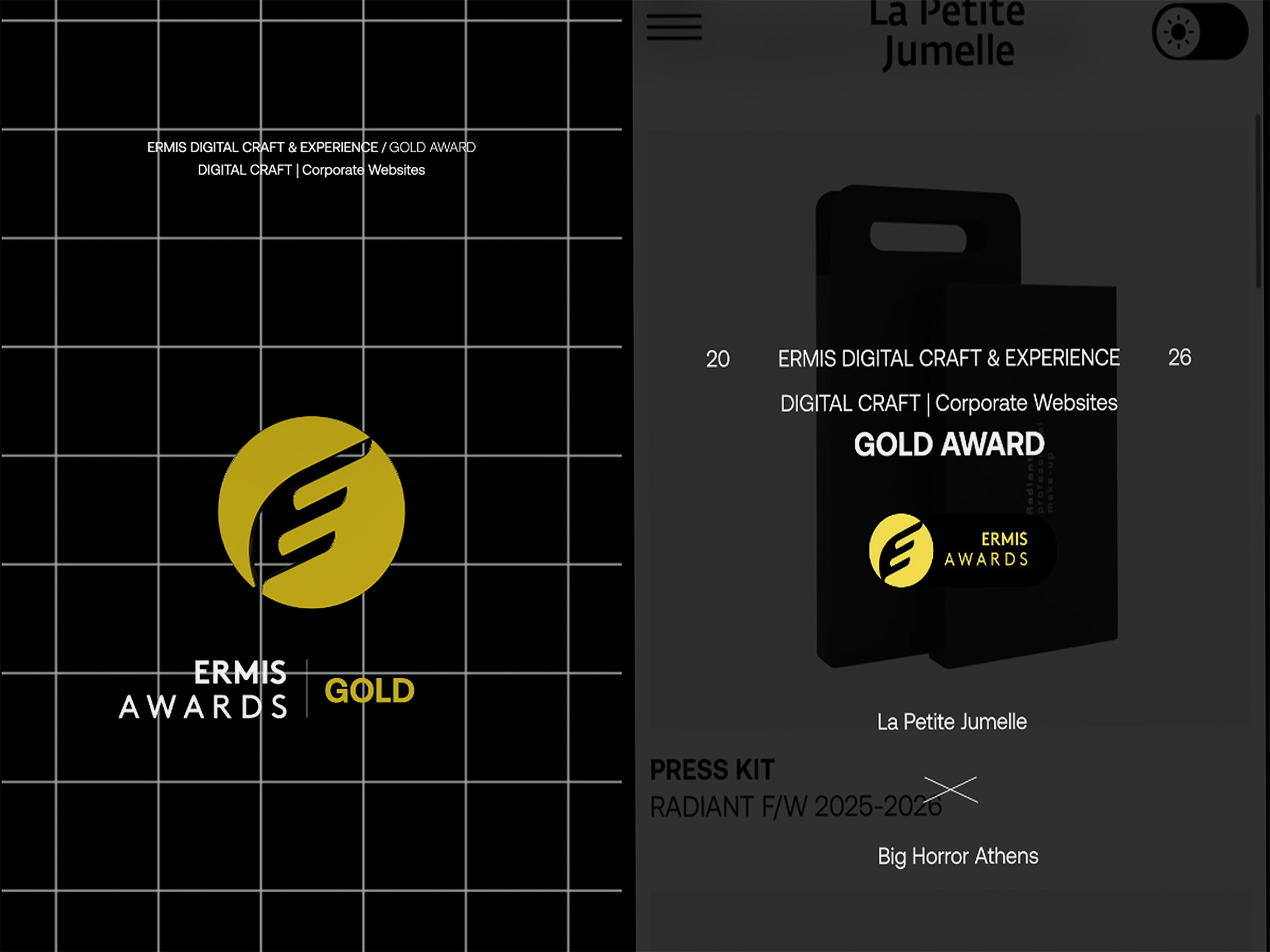 The creative team at Big Horror Athens was awarded with Ermis Gold in the category Digital Craft & Experience – Digital Craft / Corporate Websites, highlighting the balance between aesthetic excellence, functionality, and the modern digital experience delivered by the website.