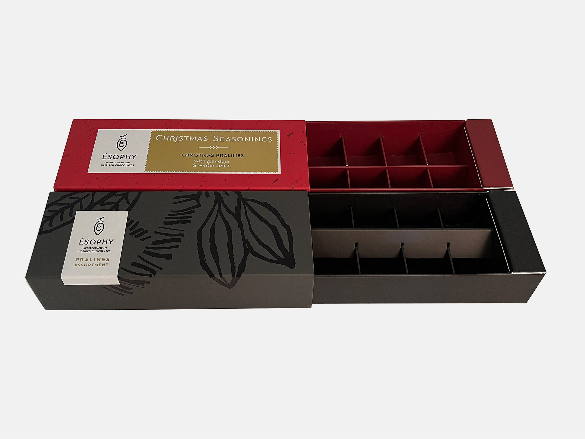 Κουτί Πραλίνες ESOPHY Πραλίνες ESOPHY Πραλίνες ESOPHY Πραλίνες ESOPHY Πραλίνες ESOPHY Συρταρωτά αυτοκλειόμενα κουτιά με εσωτερική υποδοχή για τις πραλίνες από S.Fine και ματ πλαστικοποίηση. ΠΕΡΙΣΣΟΤΕΡΑ Printing CMYK χρυσή και μαύρη θερμοτυπία Industrial Design La Petite Jumelle Graphic Design George Probonas Client ESOPHY FBLIPIMail FBLIPIMail ΠΙΣΩ