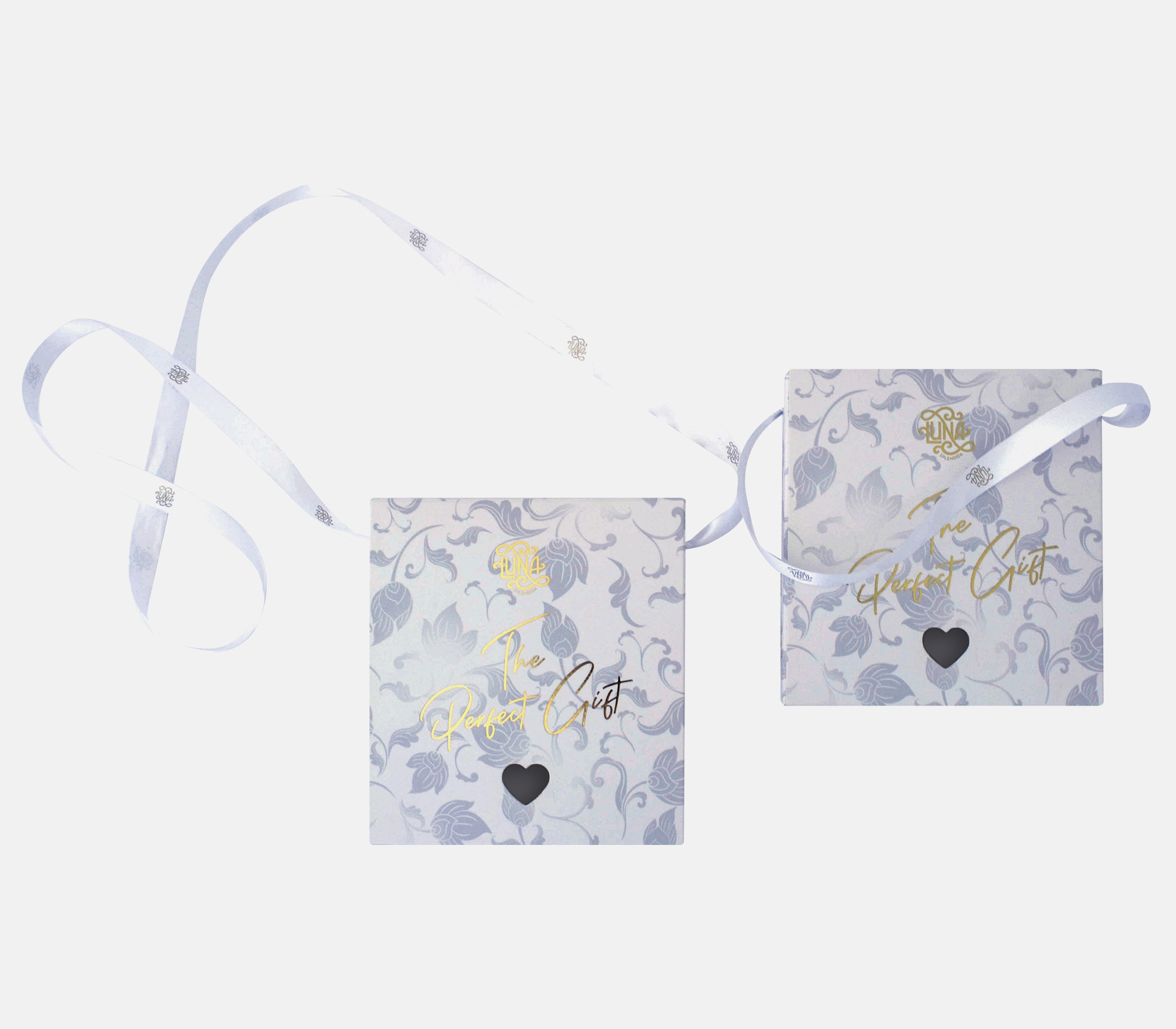 Κουτί-τσαντάκι LUNA GIFT BOX LUNA GIFT BOX LUNA GIFT BOX LUNA GIFT BOX LUNA GIFT BOX Κουτί τσαντάκι από S.Fine με κορδέλα, κοπτικό και ματ πλαστικοποίηση. ΠΕΡΙΣΣΟΤΕΡΑ Printing CMYK χρυσή θερμοτυπία Industrial Design La Petite Jumelle Client Luna Splendida FBLIPIMail FBLIPIMail ΠΙΣΩ