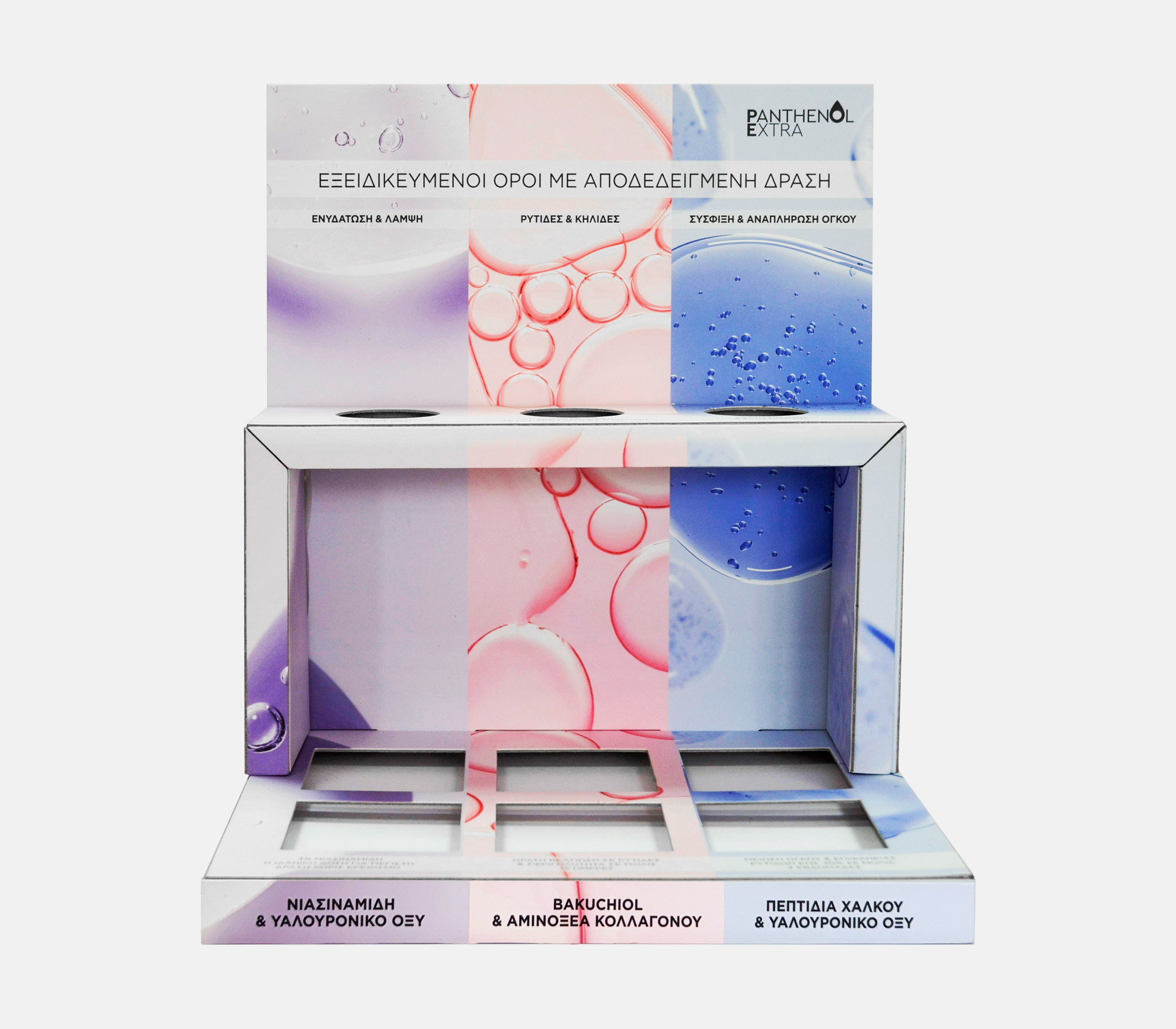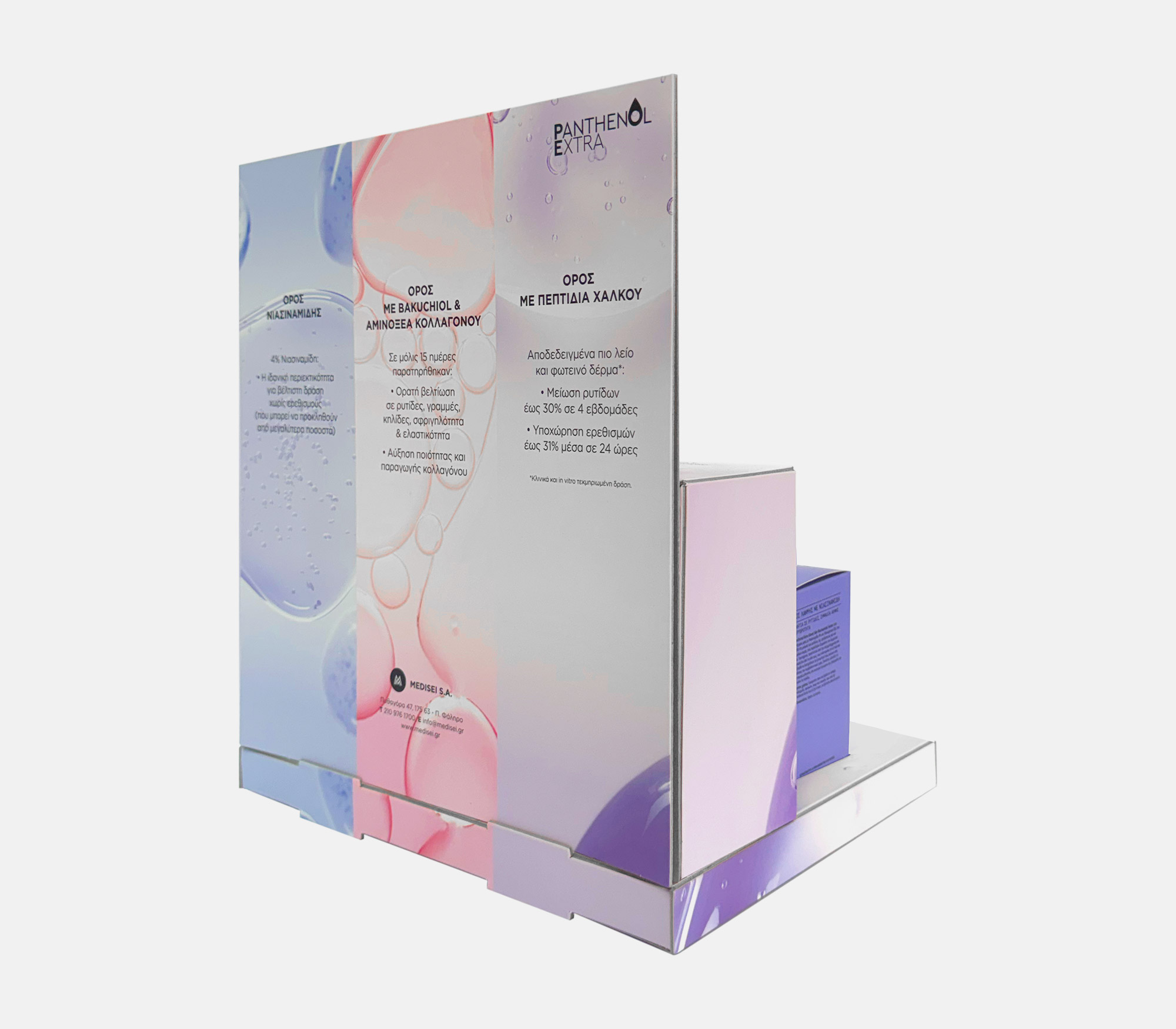 Επιτραπέζιο σταντ MEDISEI – PANTHENOL EXTRA SERUM MEDISEI – PANTHENOL EXTRA SERUM MEDISEI – PANTHENOL EXTRA SERUM MEDISEI – PANTHENOL EXTRA SERUM MEDISEI – PANTHENOL EXTRA SERUM Επιτραπέζιο stand με κορμό, καρτολίνα και βάθρο με θέσεις τοποθέτησης tester, από χαρτόνι επενδυμένο με S.Fine. ΠΕΡΙΣΣΟΤΕΡΑ Printing CMYK ματ πλαστικοποίηση Industrial Design La Petite Jumelle Client MEDISEI FBLIPIMail FBLIPIMail ΠΙΣΩ
