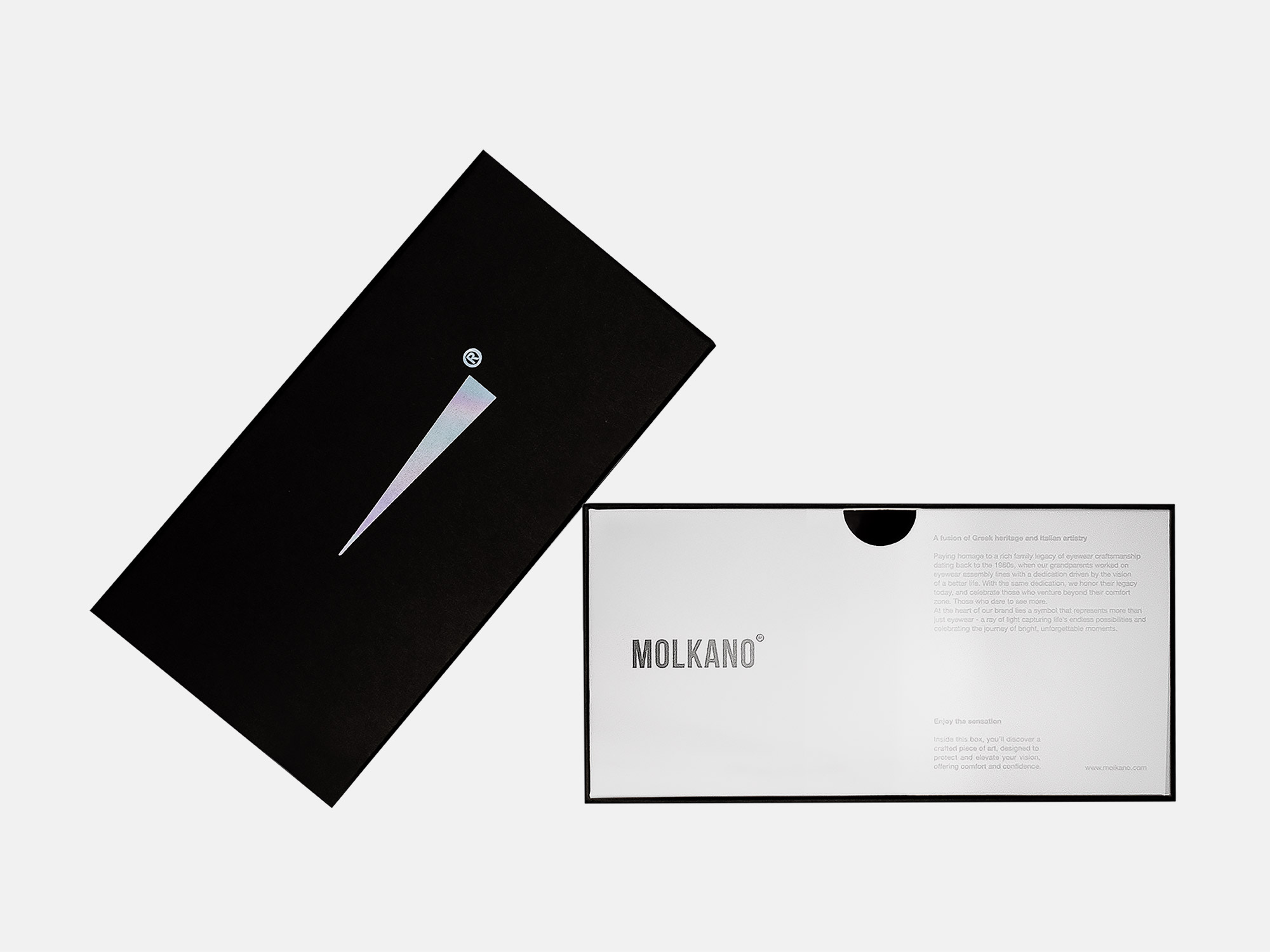 Κουτί MOLKANO EYEWEAR MOLKANO EYEWEAR MOLKANO EYEWEAR MOLKANO EYEWEAR MOLKANO EYEWEAR Σκληρό κουτί από μαύρο χαρτόνι επενδυμένο με Sirio Black και μονόφυλλο από S.Fine, με ματ πλαστικοποίηση. ΠΕΡΙΣΣΟΤΕΡΑ Printing 1 Pantone ασημί θερμοτυπία Industrial Design La Petite Jumelle Client MOLKANO FBLIPIMail FBLIPIMail ΠΙΣΩ
