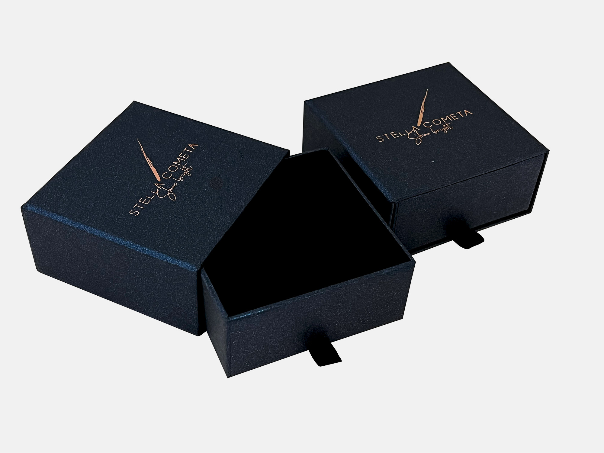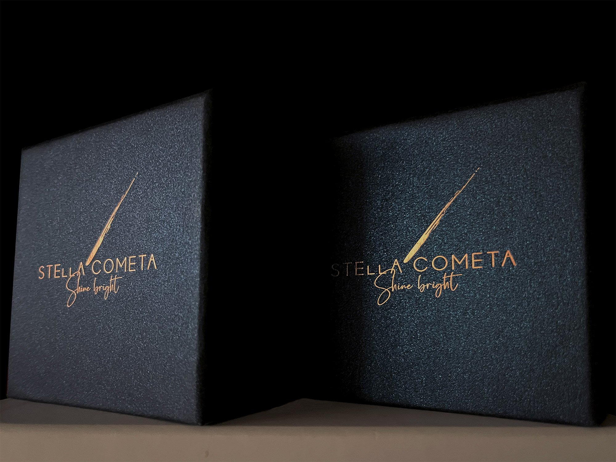 Κουτί Κοσμήματα STELLA COMETA Κοσμήματα STELLA COMETA Κοσμήματα STELLA COMETA Κοσμήματα STELLA COMETA Κοσμήματα STELLA COMETA Πολυτελές συρταρωτό κουτί από σκληρό χαρτόνι επενδυμένο με χαρτί Sirio Pearl Shinny Blue. Εσωτερική βάση στήριξης από foam για το κόσμημα. ΠΕΡΙΣΣΟΤΕΡΑ Printing θερμοτυπίες ροζ - χρυσό Industrial Design La Petite Jumelle Client STELLA COMETA FBLIPIMail FBLIPIMail ΠΙΣΩ