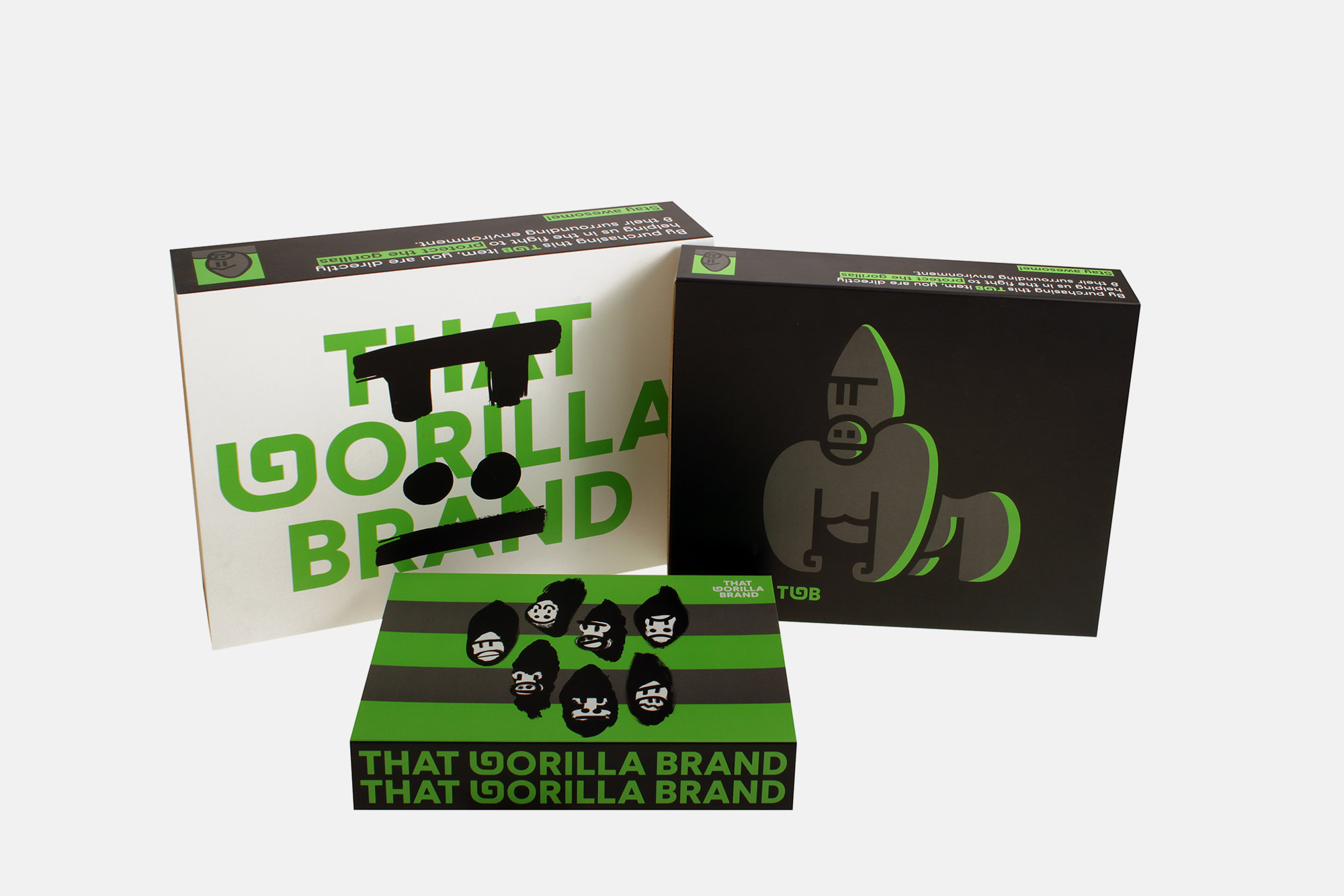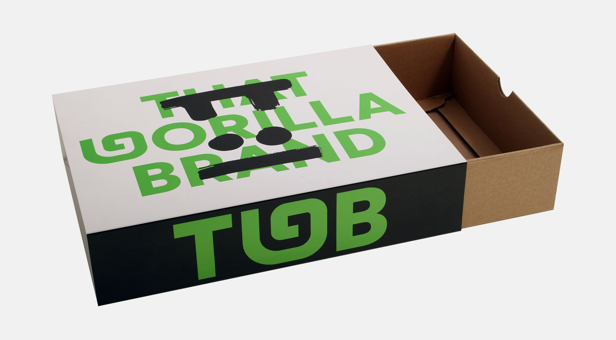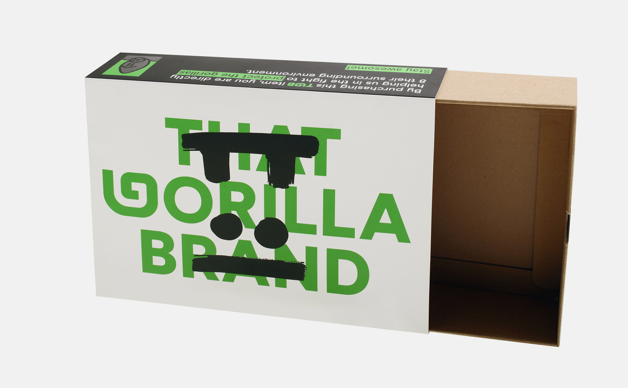 Κουτί e-shop THAT GORILLA BRAND THAT GORILLA BRAND THAT GORILLA BRAND THAT GORILLA BRAND THAT GORILLA BRAND Κουτιά σε τρία διαφορετικά μεγέθη και εικαστικά από E-flute επενδυμένα με Kraft και sleeve από S.Fine με ματ πλαστικοποίηση. ΠΕΡΙΣΣΟΤΕΡΑ Printing Pantone μαύρο χρώμα Industrial Design La Petite Jumelle Graphic Design BEETROOT DESIGN GROUP Client THAT GORILLA BRAND FBLIPIMail FBLIPIMail ΠΙΣΩ