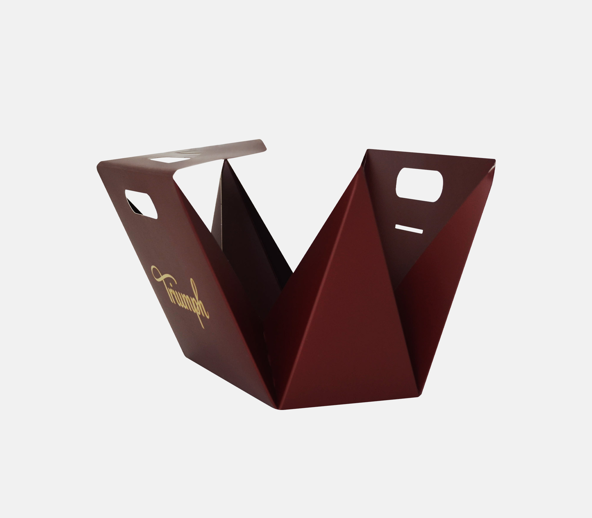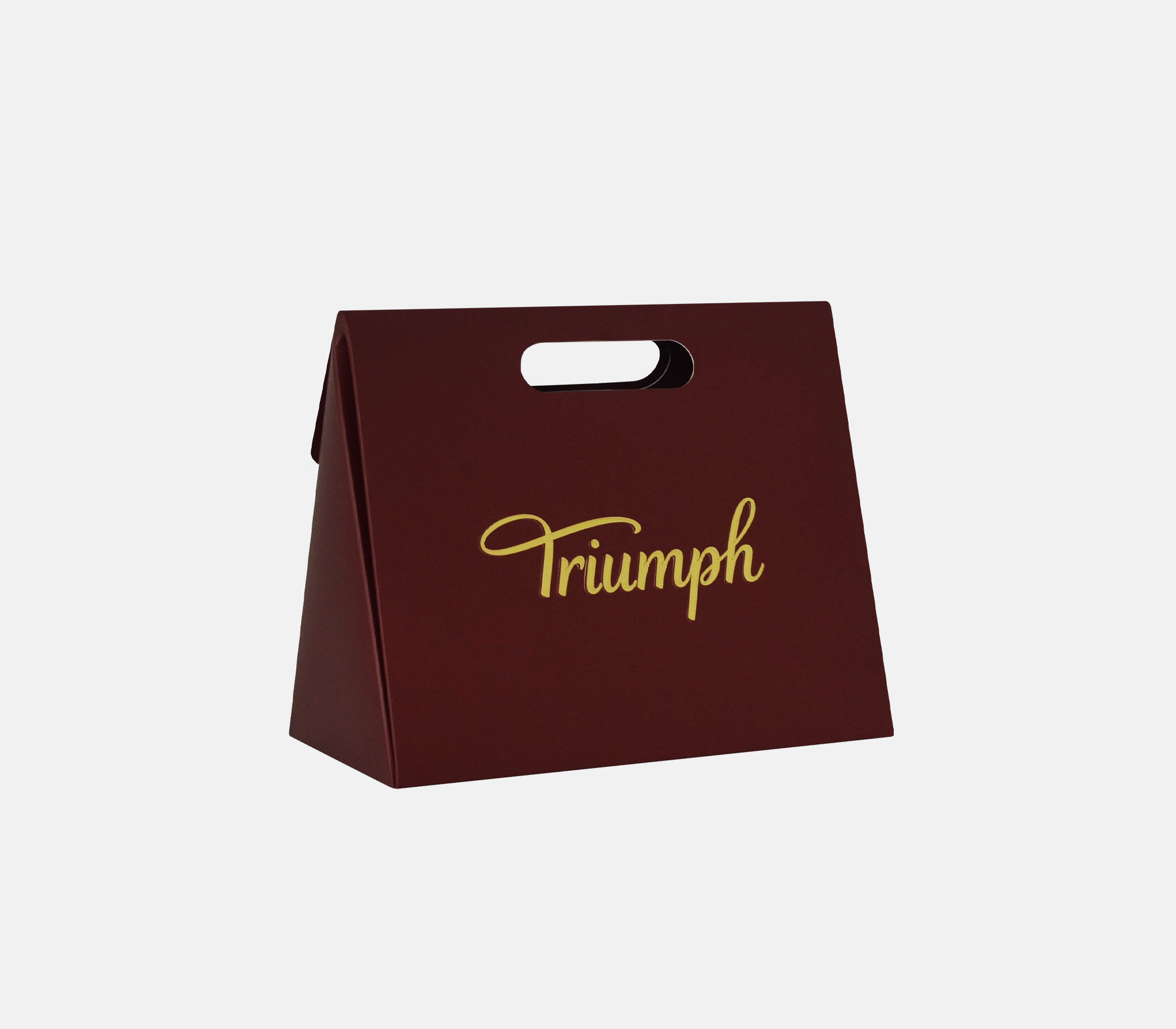 Κουτί-τσαντάκι TRIUMPH XMAS BOXES 2025 TRIUMPH XMAS BOXES 2025 TRIUMPH XMAS BOXES 2025 TRIUMPH XMAS BOXES 2025 TRIUMPH XMAS BOXES 2025 Τριγωνικό αναδιπλούμενο κουτί - τσαντάκι από S.Fine, με κοπτικό στη λαβή σε δύο μεγέθη. ΠΕΡΙΣΣΟΤΕΡΑ Printing 1 Pantone ανάγλυφο ματ πλαστικοποίηση χρυσή θερμοτυπία Industrial Design La Petite Jumelle Client Triumph FBLIPIMail FBLIPIMail ΠΙΣΩ