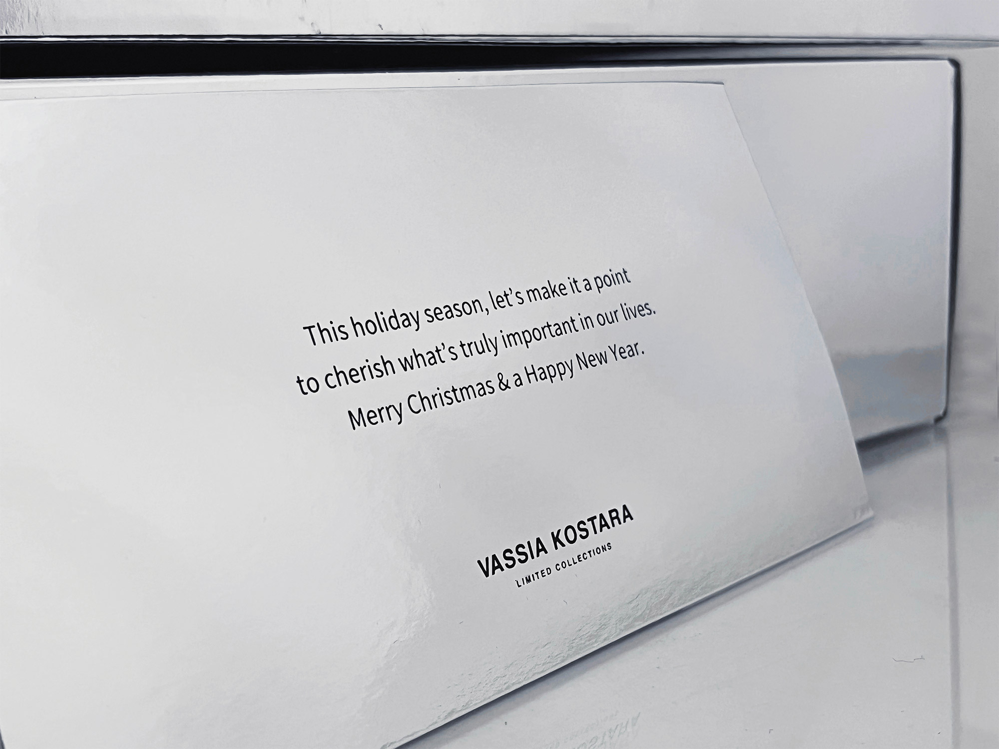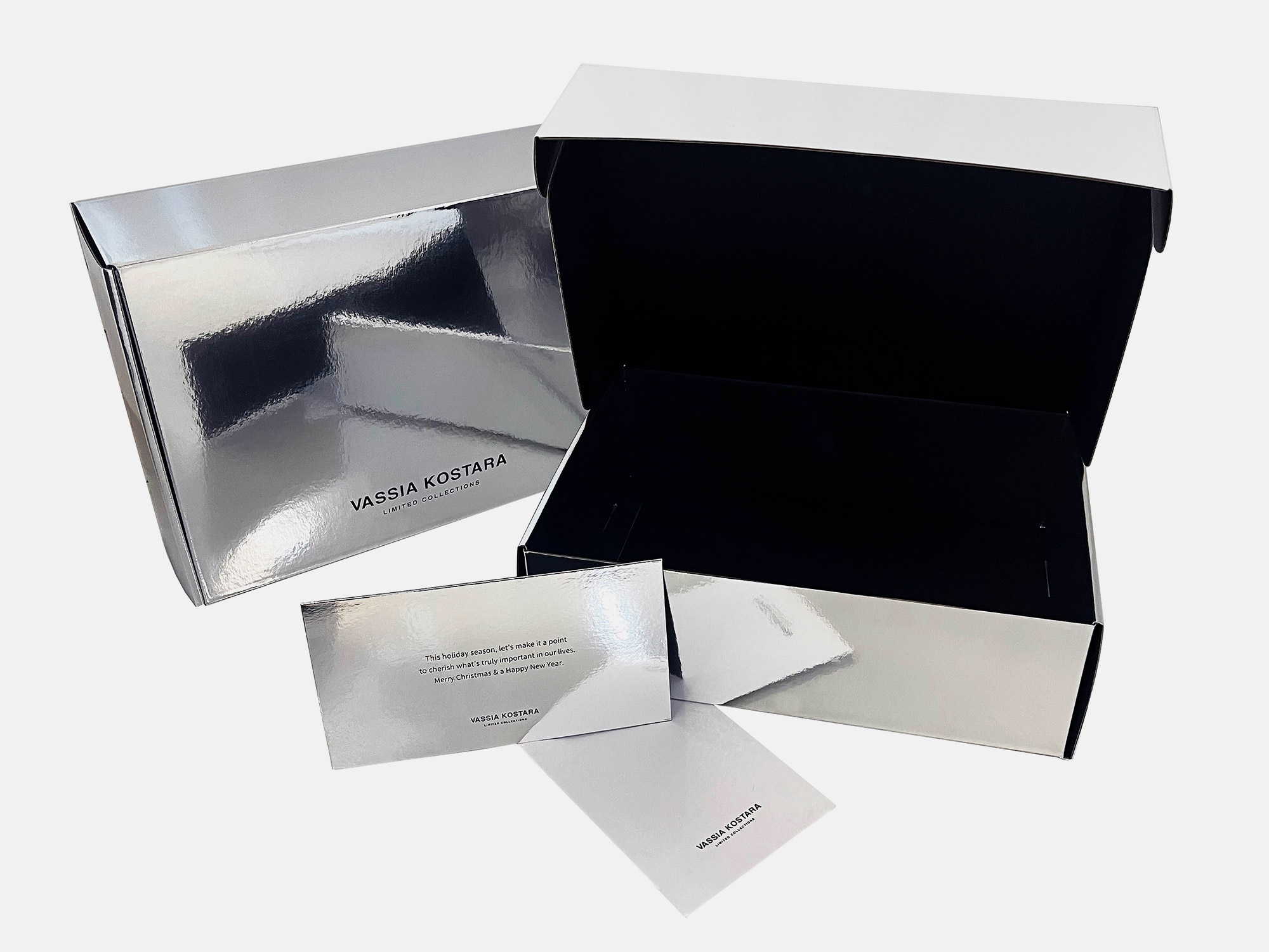 Κουτί e-shop VASSIA KOSTARA Christmas 2023 VASSIA KOSTARA Christmas 2023 VASSIA KOSTARA Christmas 2023 VASSIA KOSTARA Christmas 2023 VASSIA KOSTARA Christmas 2023 Κουτιά αποστολής σε δύο μεγέθη, από E-flute επενδυμένα εξωτερικά με ασημί πολυεστέρα και εσωτερικά με Sirio Black. ΠΕΡΙΣΣΟΤΕΡΑ Printing μαύρη θερμοτυπία Industrial Design La Petite Jumelle Client VASSIA KOSTARA FBLIPIMail FBLIPIMail ΠΙΣΩ