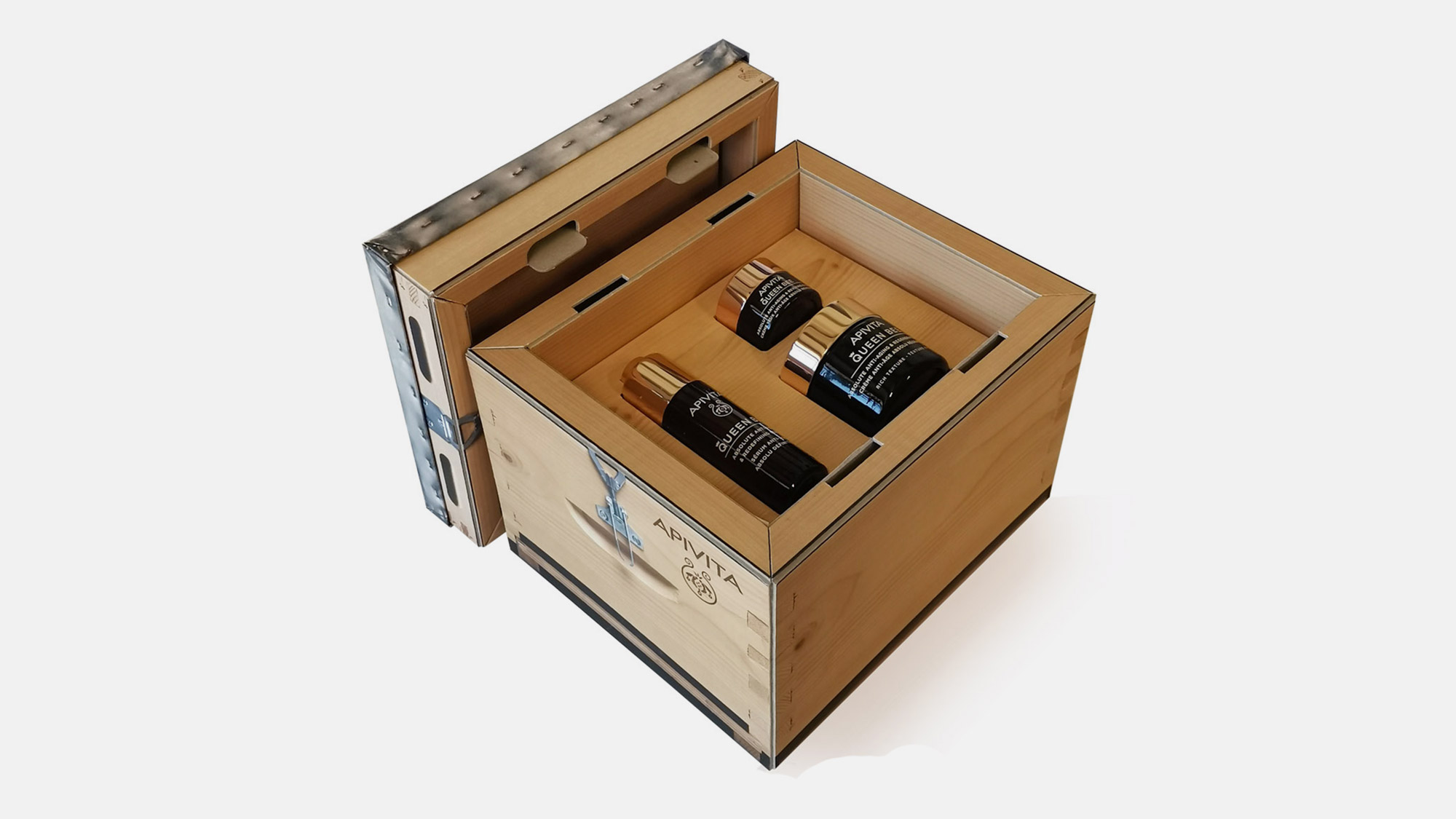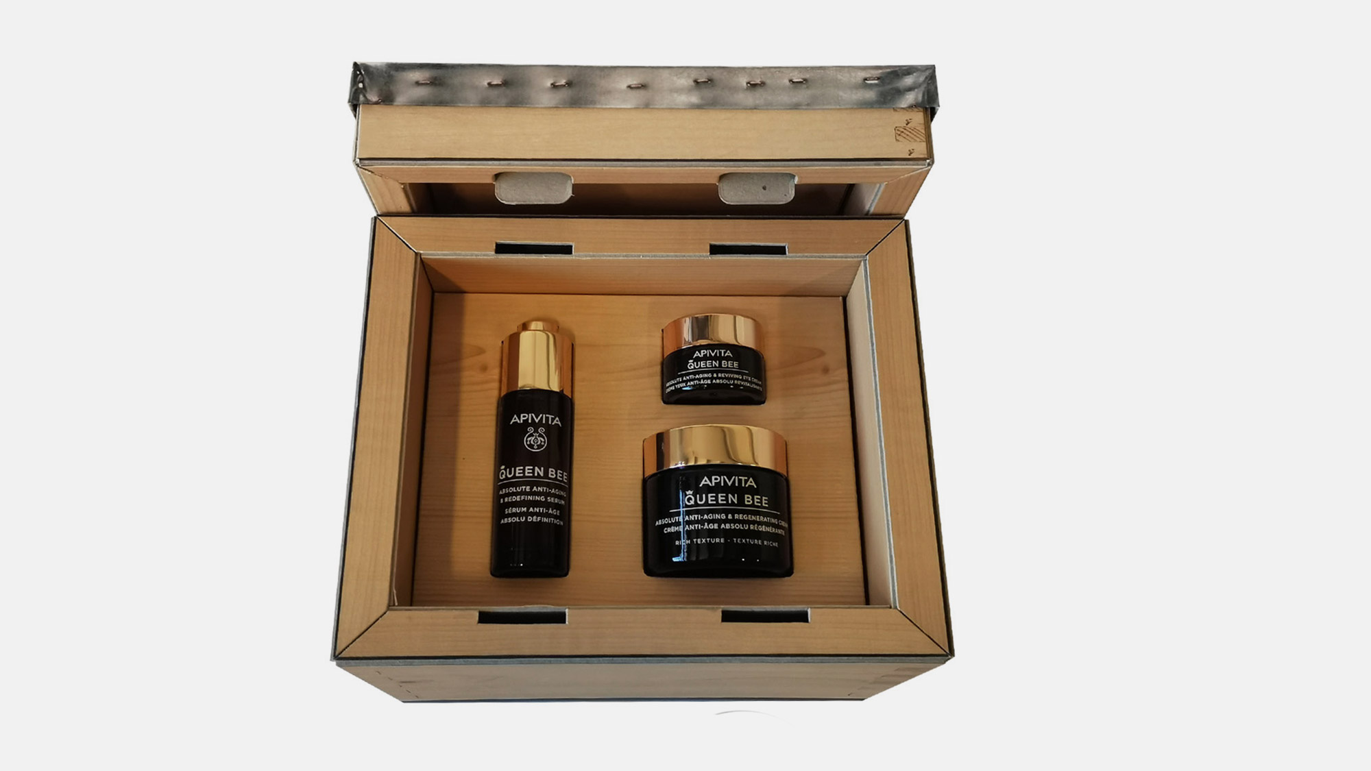 Promo Box APIVITA Queen Bee Hive APIVITA Queen Bee Hive APIVITA Queen Bee Hive APIVITA Queen Bee Hive APIVITA Queen Bee Hive Βox in a hive copy. Made of grey cardboard, covered on the external side with writing paper. And three different supporting racks. MORE Eco friendly Printing CMYK Industrial Design La Petite Jumelle Graphic Design APIVITA Client APIVITA Awards Packaging Awards FBLIPIMail FBLIPIMail Back
