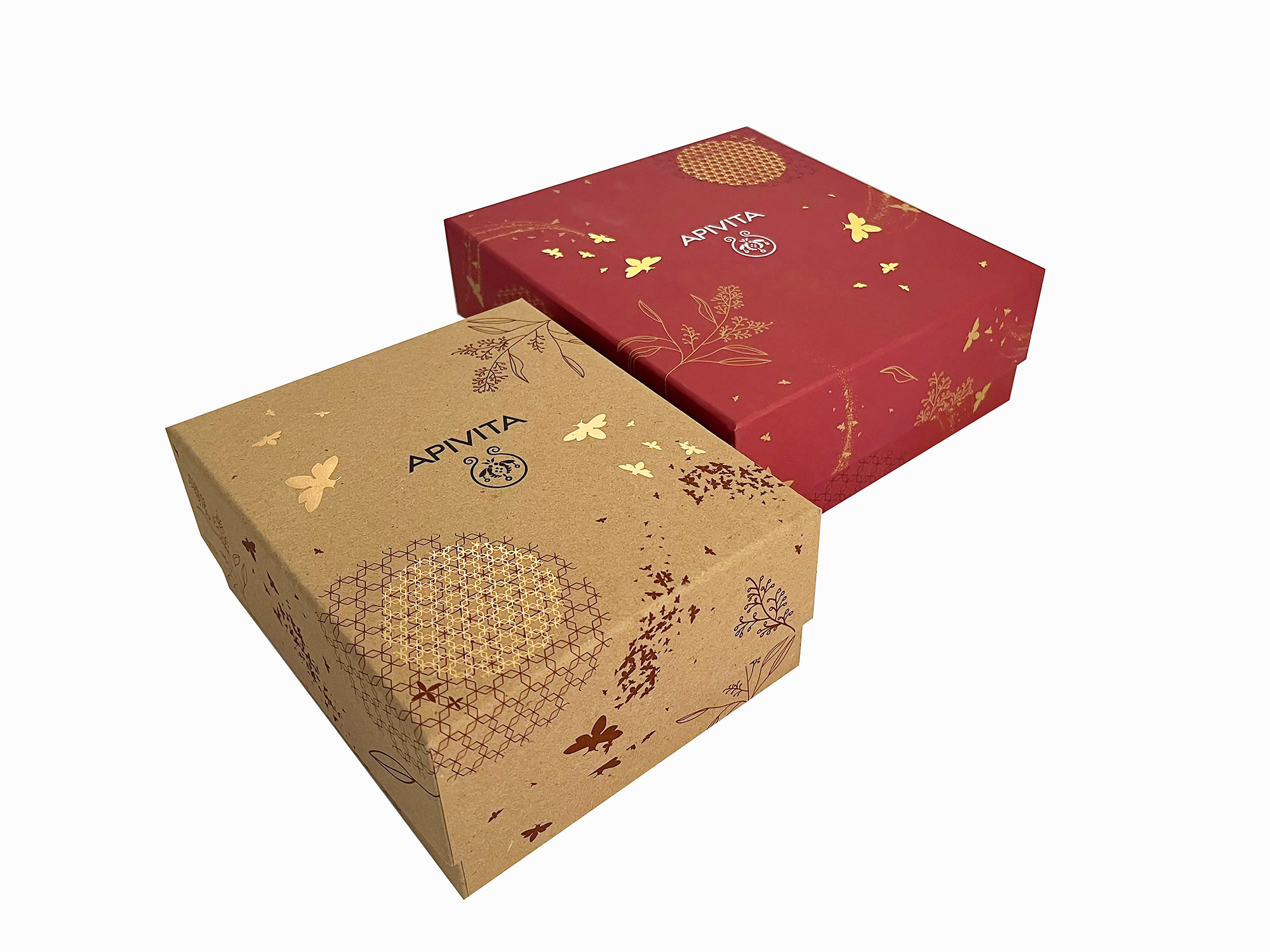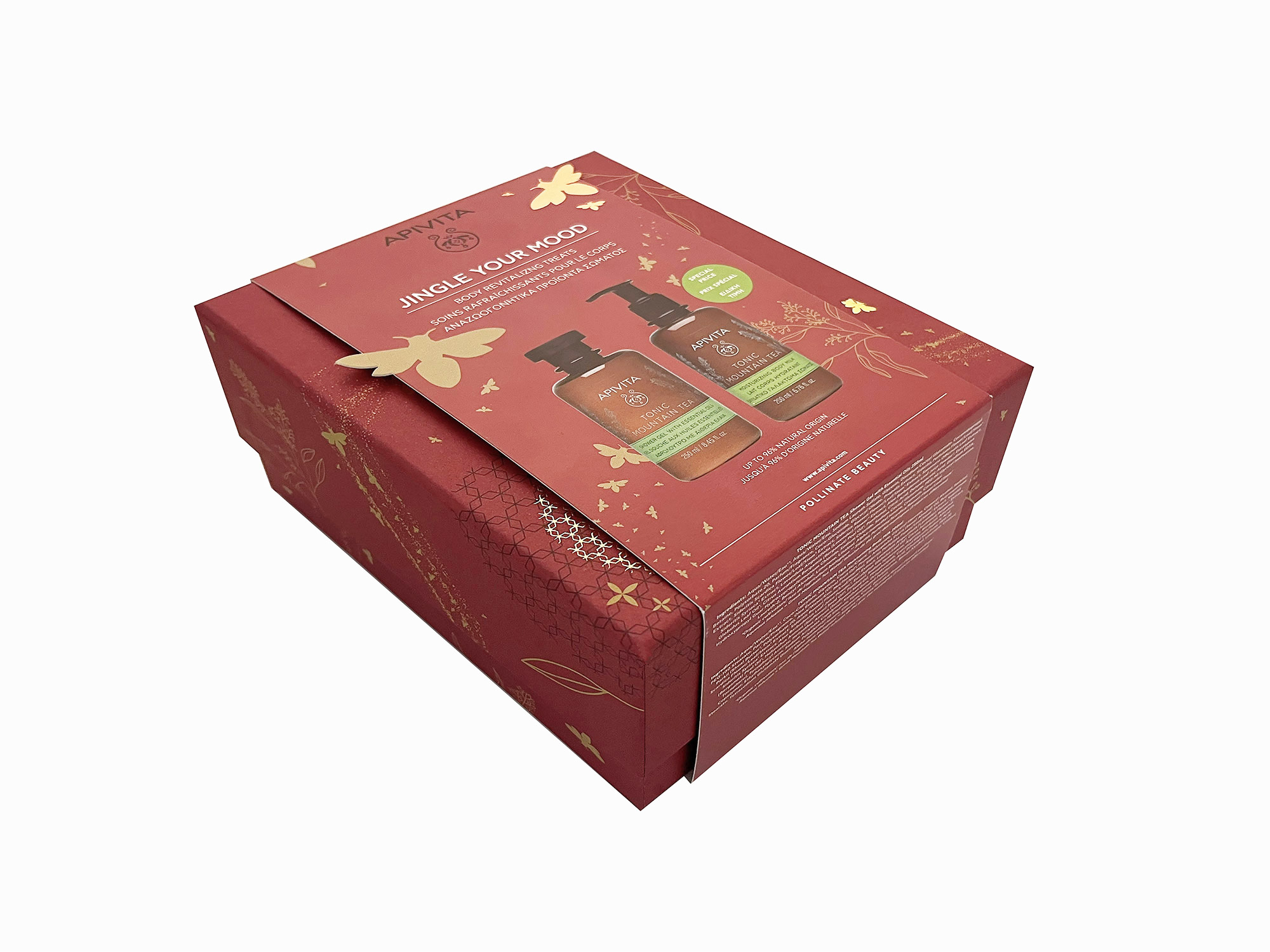 Christmas Box APIVITA XMAS 2022 APIVITA XMAS 2022 APIVITA XMAS 2022 APIVITA XMAS 2022 APIVITA XMAS 2022 Rigid boxes in two sizes, covered with Plain uncoated paper or Kraft paper and sleeve made of GC1 paper. And plain boxes made of Kraft paper with GC1 sleeve. MORE Eco friendly Printing 2 colors CMYK gold hotfoil stamping Pantone water varnish Industrial Design La Petite Jumelle Graphic Design APIVITA Client APIVITA FBLIPIMail FBLIPIMail Back