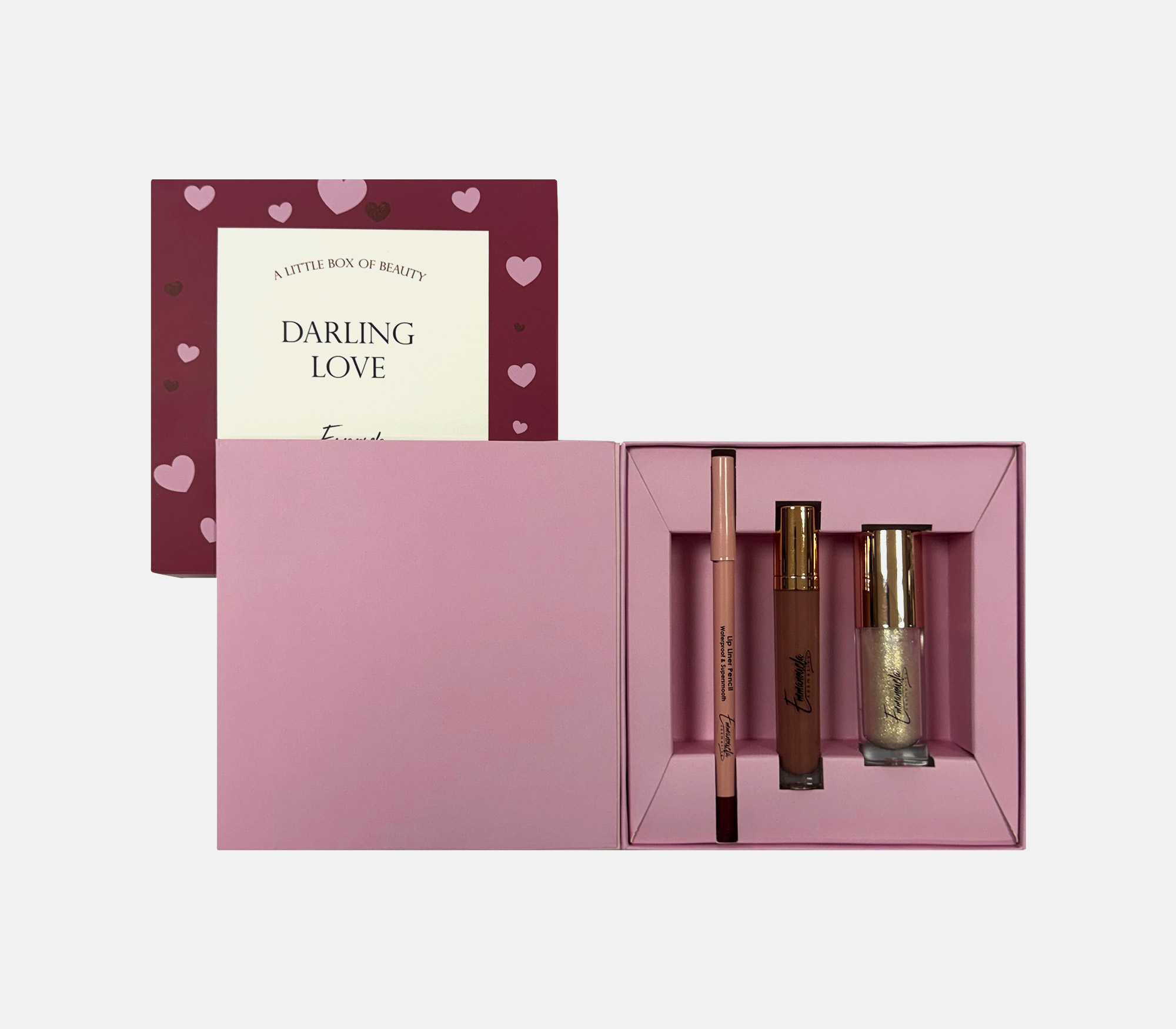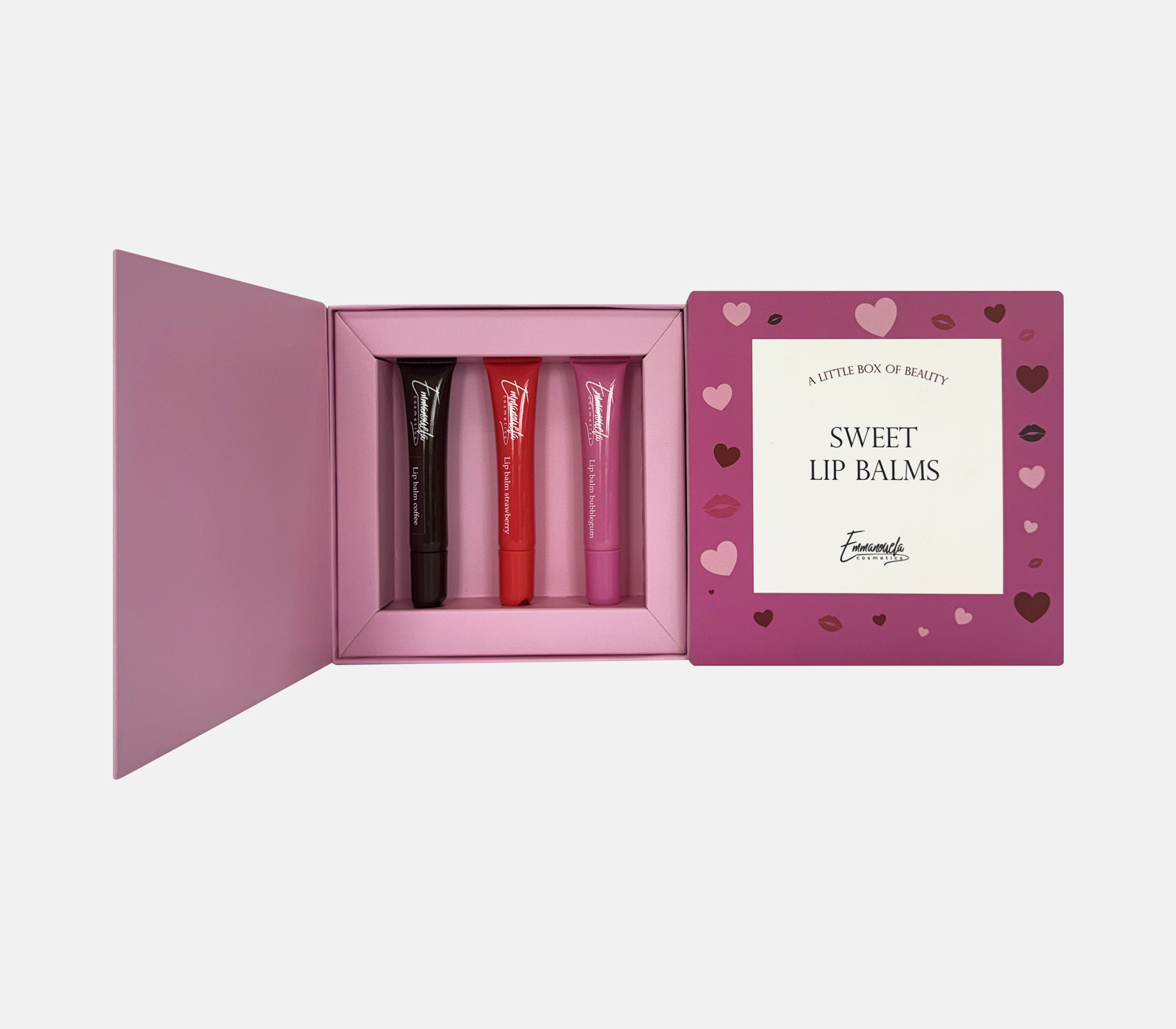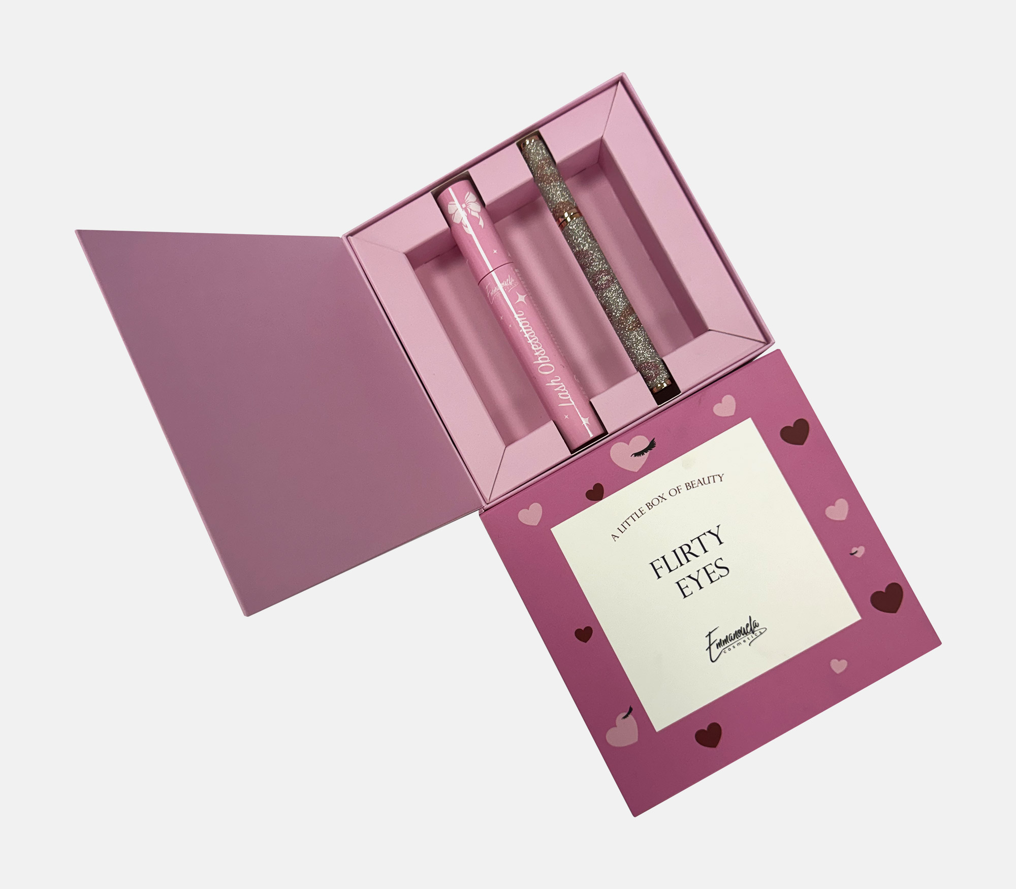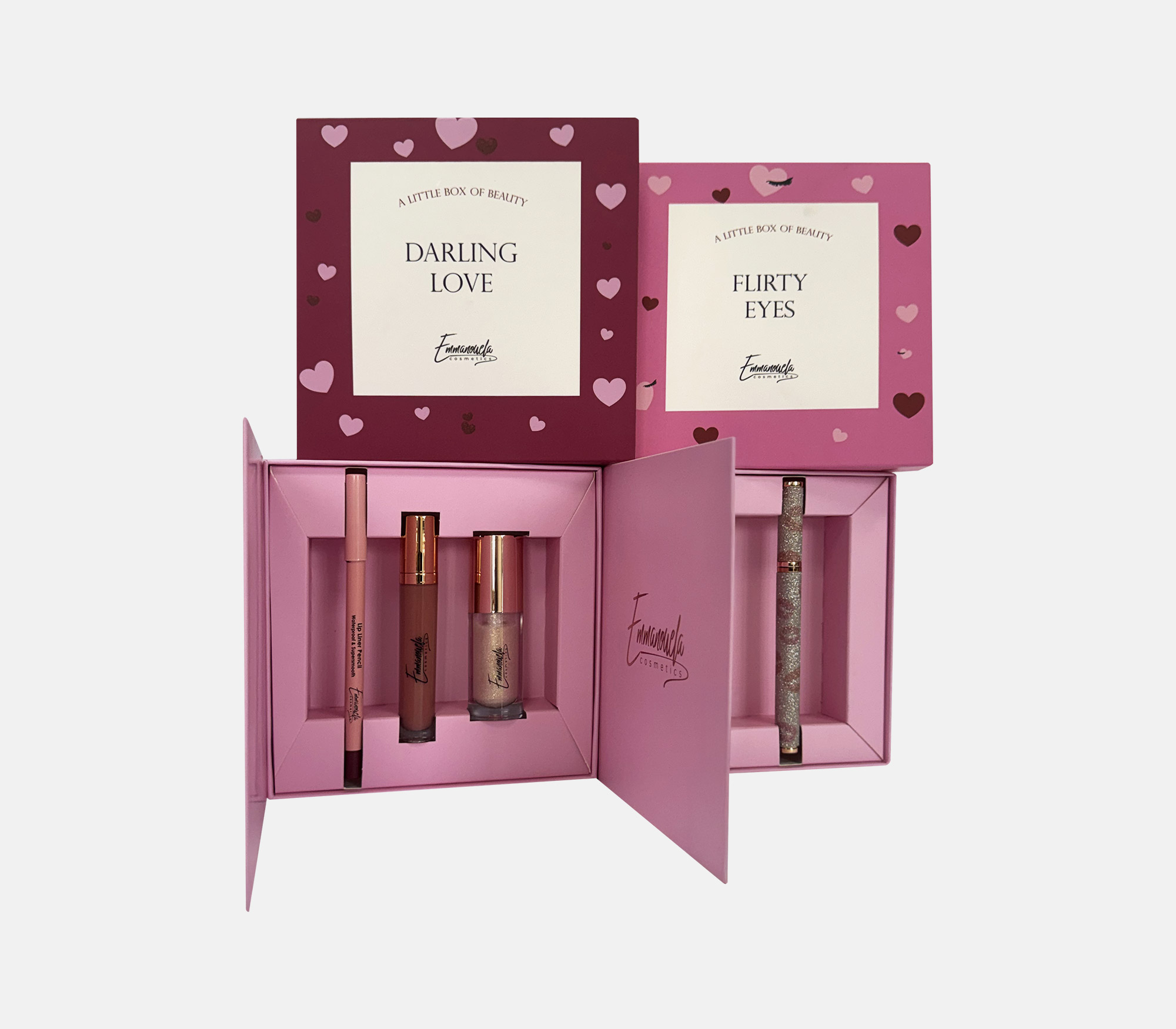 Box EMMANOUELA COSMETICS EMMANOUELA COSMETICS EMMANOUELA COSMETICS EMMANOUELA COSMETICS EMMANOUELA COSMETICS Box with dashboard made of GC1, internal supporting racks with different positioning slots and sleeves with four different graphic designs. MORE Printing CMYK gold hotfoil stamping matt lamination Industrial Design La Petite Jumelle Client emmanouela cosmetics FBLIPIMail FBLIPIMail Back