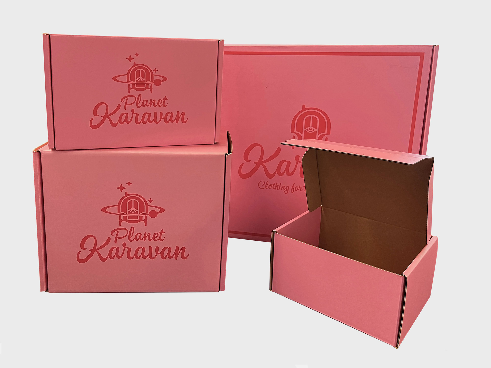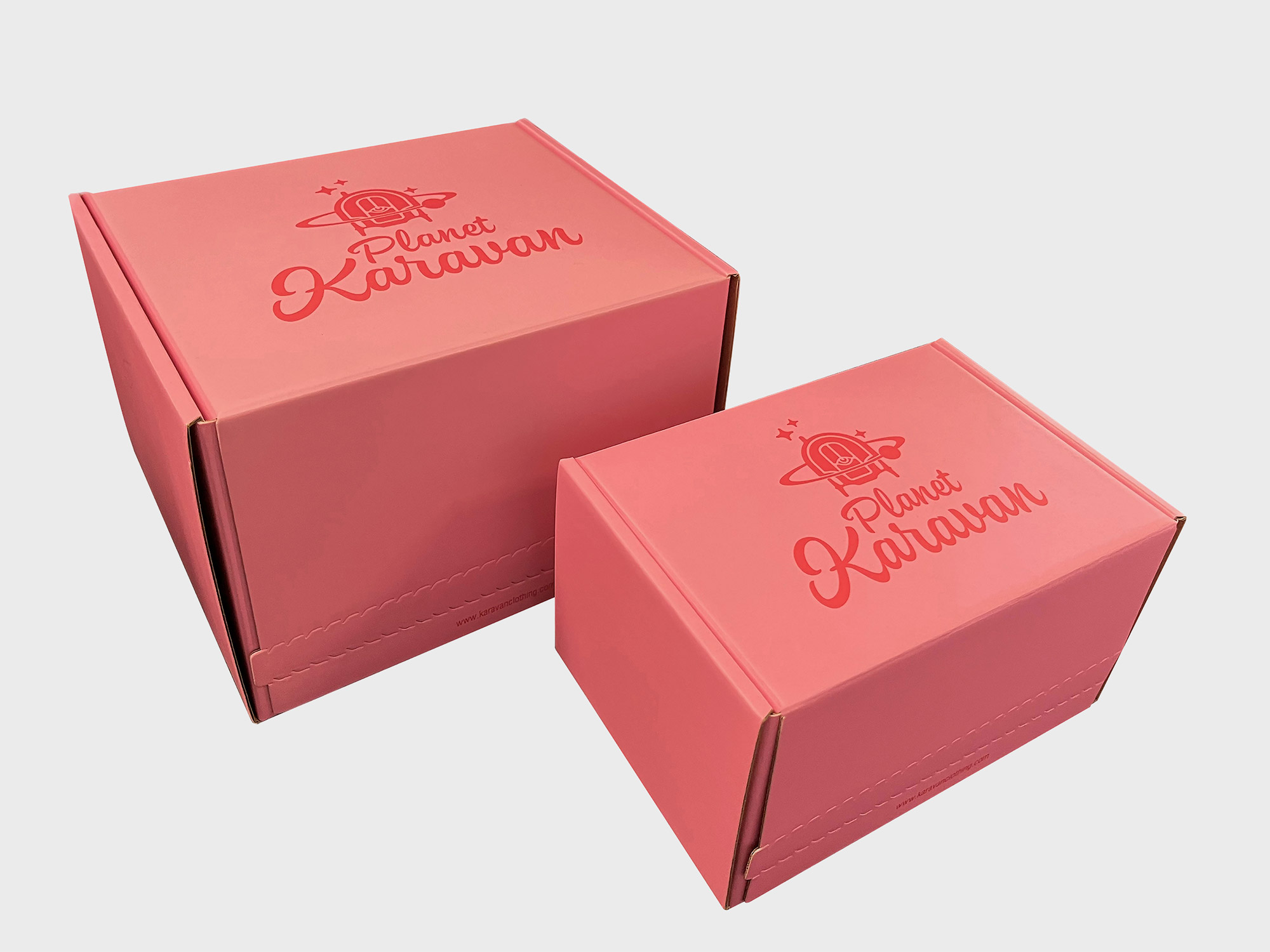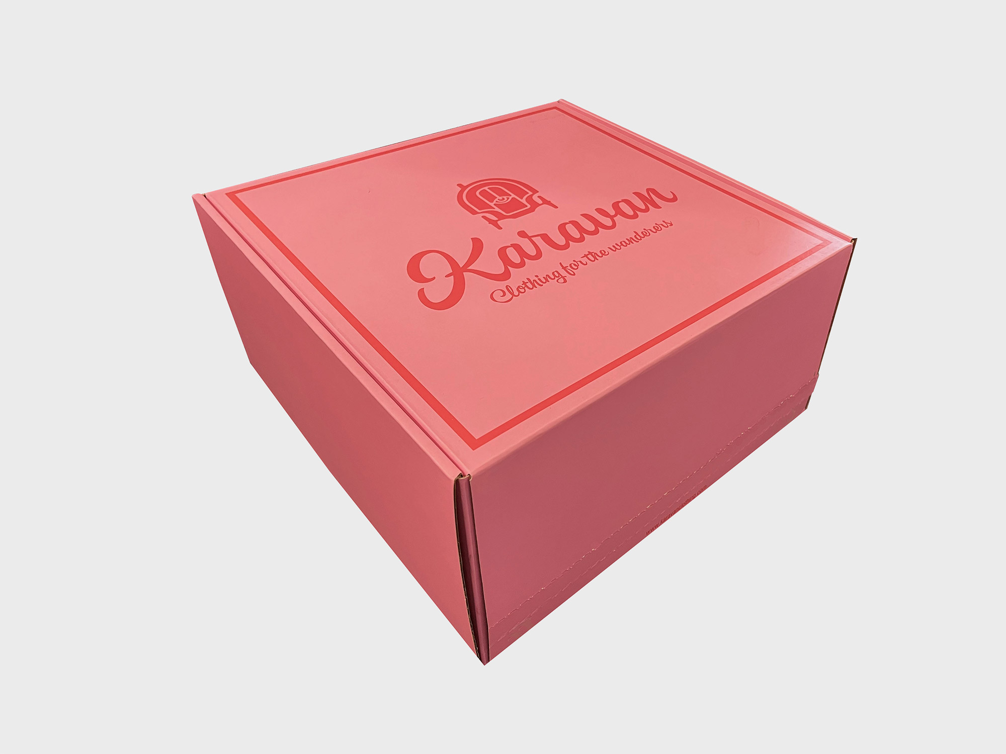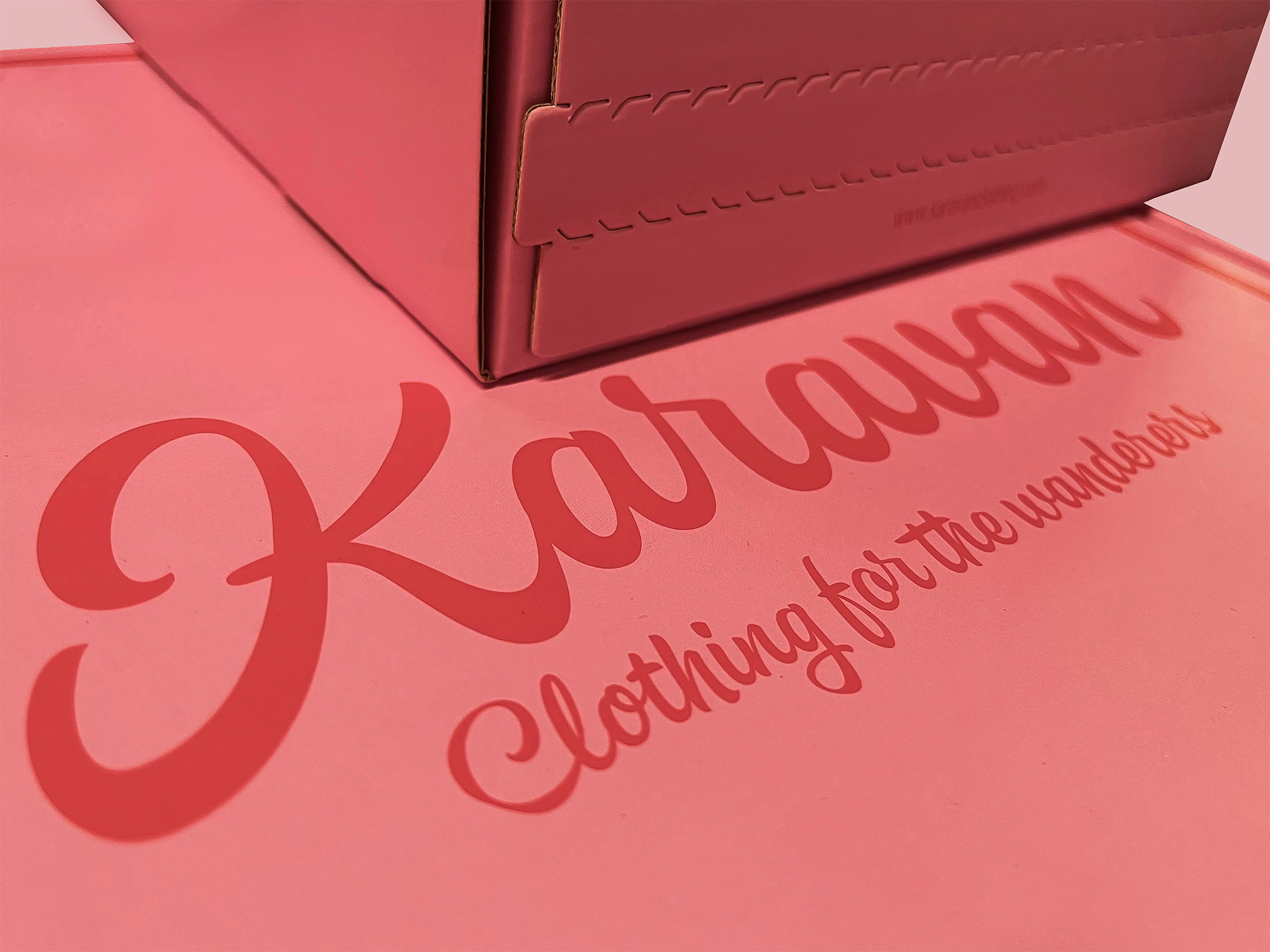 E-shop Box Karavan Clothing Karavan Clothing Karavan Clothing Karavan Clothing Karavan Clothing Self-folding boxes with zipper in four different sizes made of E-flute, covered with GC1 on the external surface, with matt lamination. MORE Printing CMYK Industrial Design La Petite Jumelle Client Karavan clothing FBLIPIMail FBLIPIMail Back