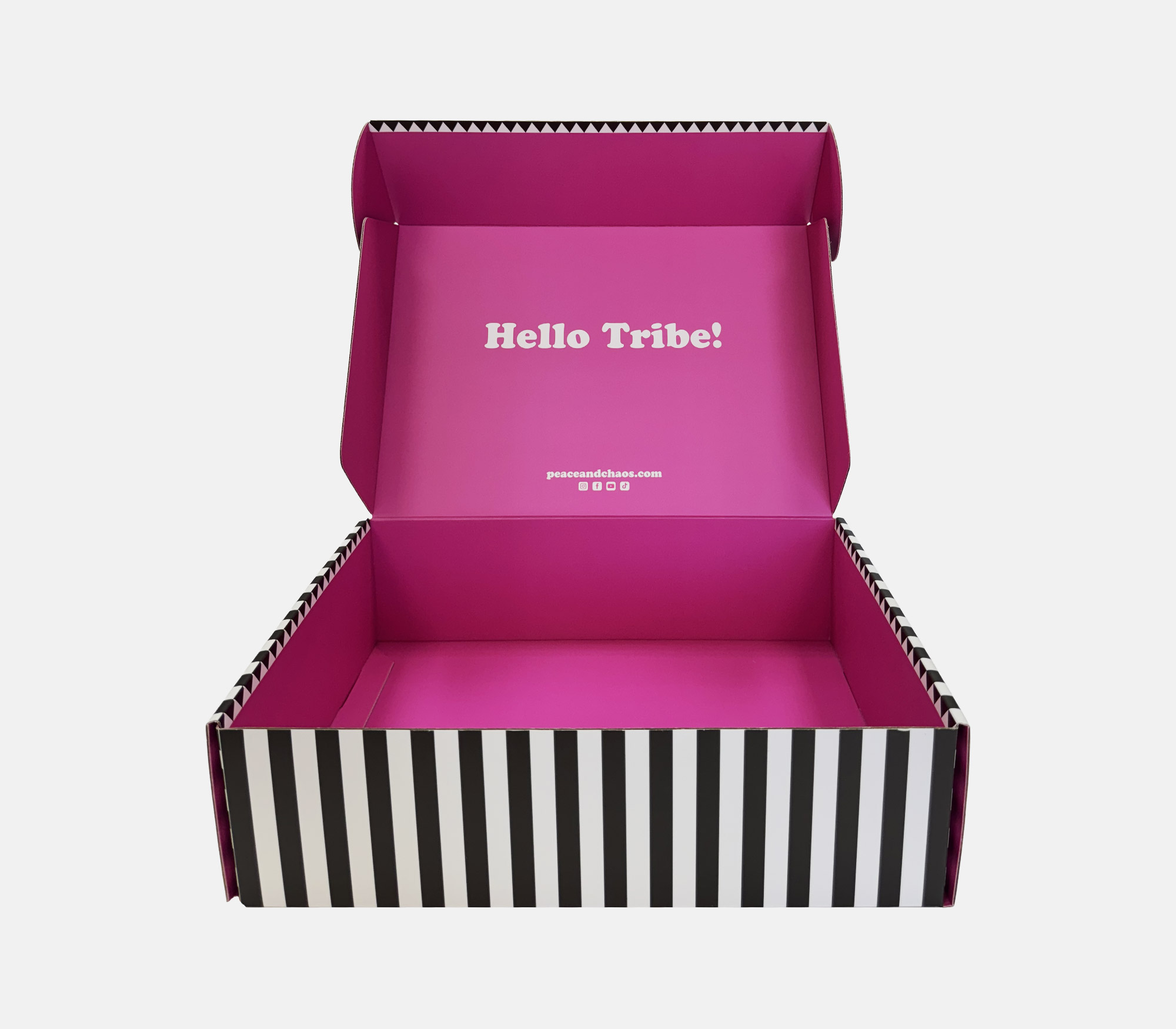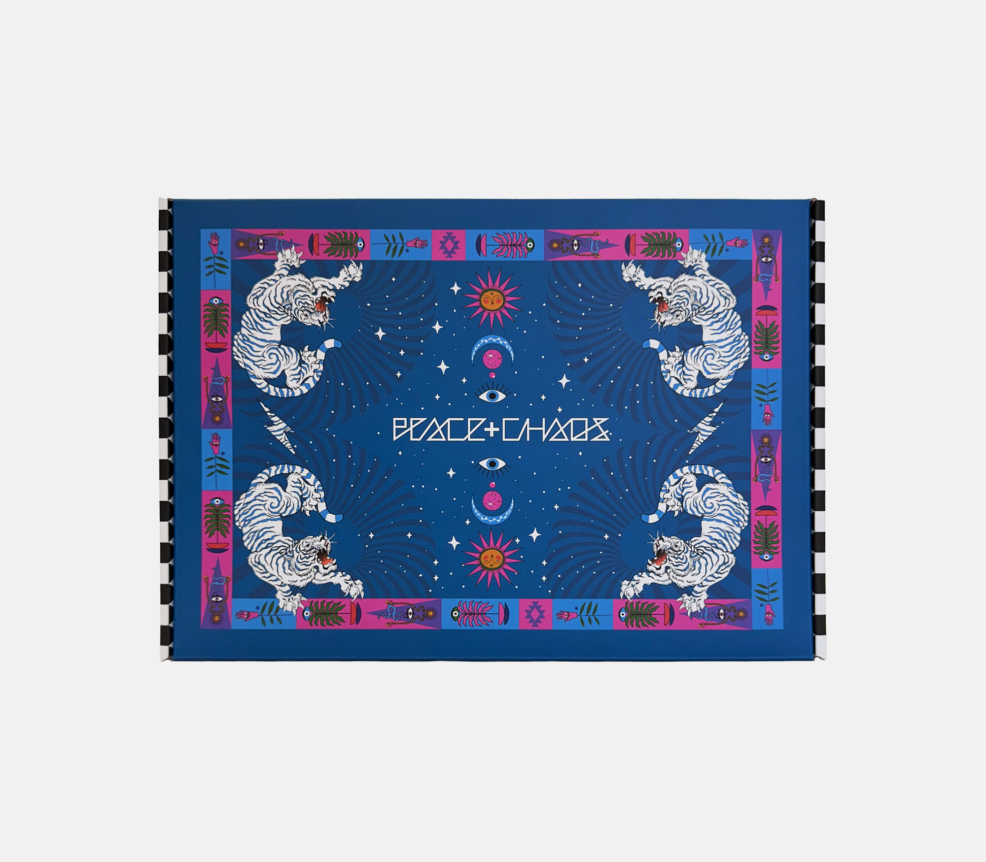 E-shop Box PEACE AND CHAOS PEACE AND CHAOS PEACE AND CHAOS PEACE AND CHAOS PEACE AND CHAOS Self-folding box made of E-flute covered with GC1. MORE Printing CMYK matt lamination Industrial Design La Petite Jumelle Client PEACE AND CHAOS FBLIPIMail FBLIPIMail Back